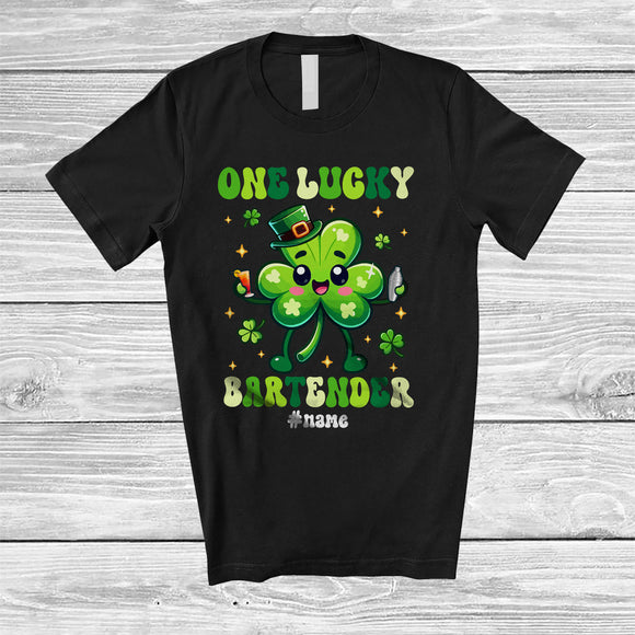Personalized One Lucky Bartender; Awesome St. Patrick's Day Custom Name Irish Shamrocks T-Shirt