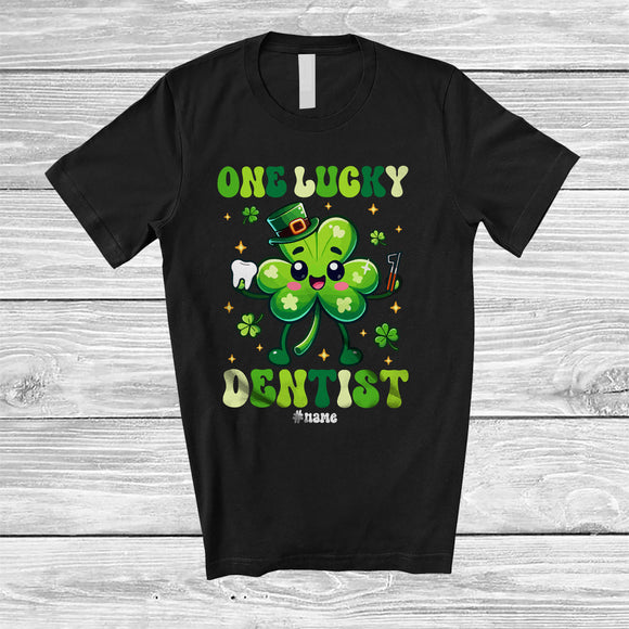 Personalized One Lucky Dentist; Awesome St. Patrick's Day Custom Name Irish Shamrocks T-Shirt
