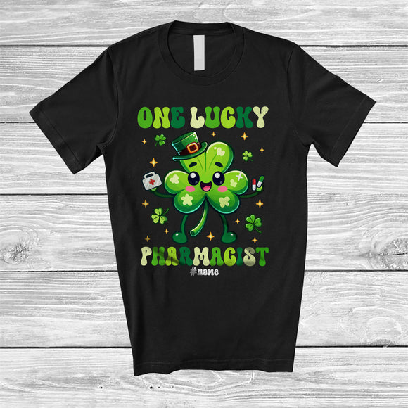 Personalized One Lucky Pharmacist; Awesome St. Patrick's Day Custom Name Irish Shamrocks T-Shirt