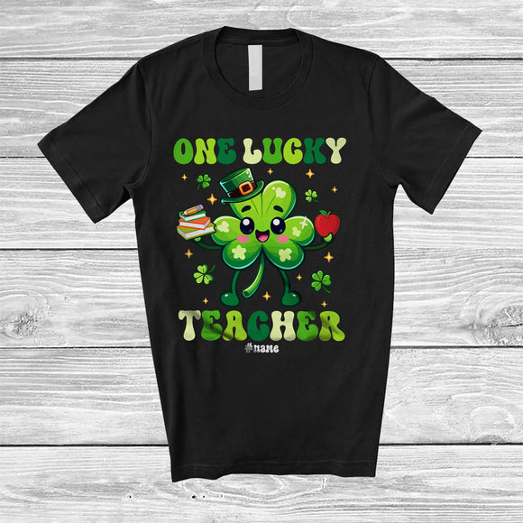 Personalized One Lucky Teacher; Awesome St. Patrick's Day Custom Name Irish Shamrocks T-Shirt