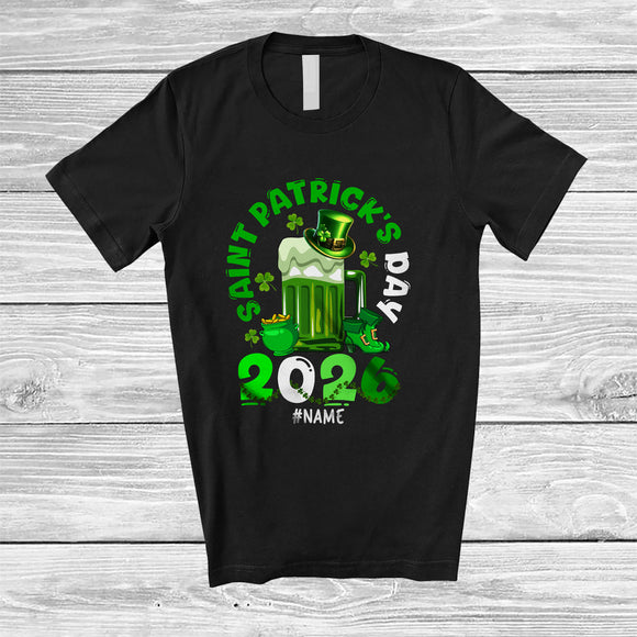 Personalized Saint Patrick's Day 2026; Lovely Leprechaun Beer Glasses; Custom Name Drinking T-Shirt