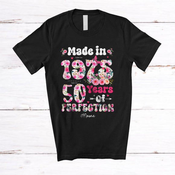 Personalized Made In 1975 Perfection; Floral Custom Name 50h Birthday 50Years Old; Flowers T-Shirt