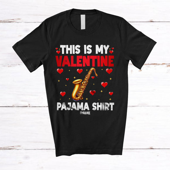 Personalized This Is My Valentine Pajama Shirt; Lovely Hearts Custom Name Saxophone Player T-Shirt