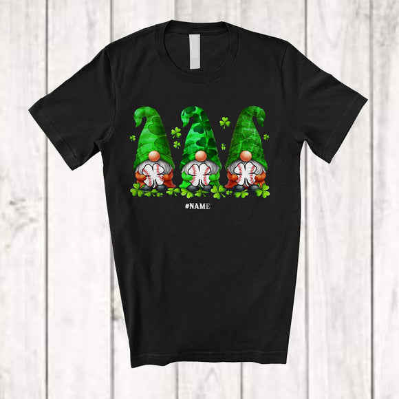 Personalized Three Gnomes Baseball Leprechaun; Awesome St. Patrick's Day Custom Name Baseball Player T-Shirt