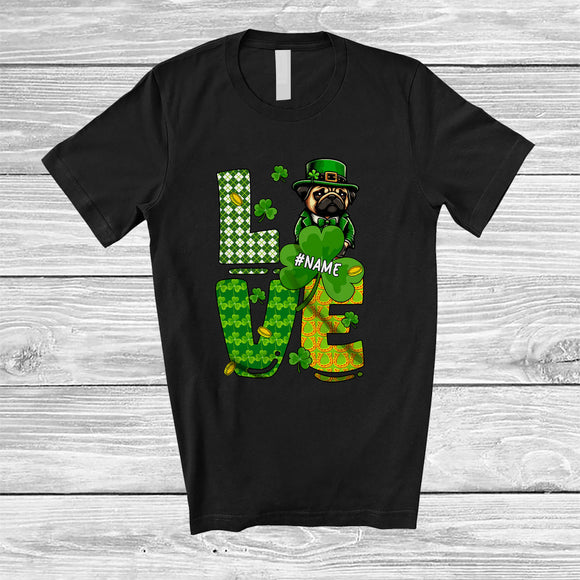 Personalized LOVE; Wonderful St. Patrick's Day Custom Name Pug Leprechaun Shamrocks T-Shirt