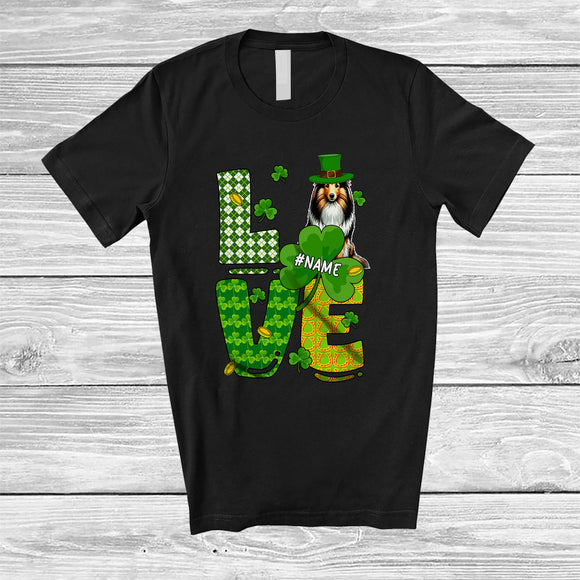 Personalized LOVE; Wonderful St. Patrick's Day Custom Name Shelties Leprechaun Shamrocks T-Shirt