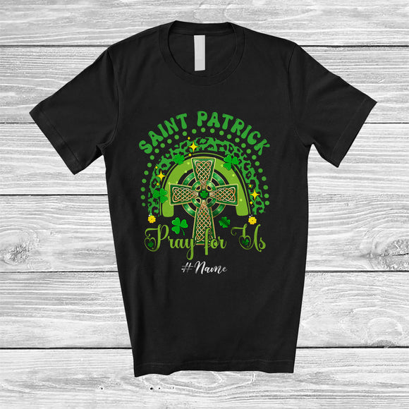 Personalized Saint Patrick Pray for Us; Amazing St. Patrick's Day Leopard Rainbow; Custom Name Family T-Shirt