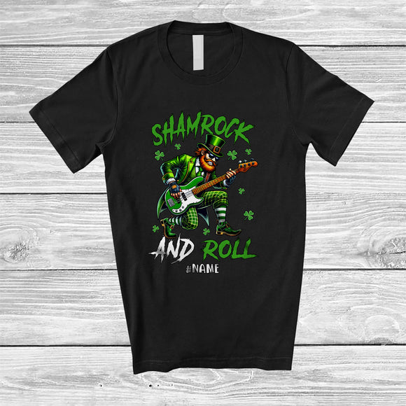 Personalized Shamrock and Roll; Cheerful St. Patrick's Day Custom Name Leprechaun Guitar T-Shirt