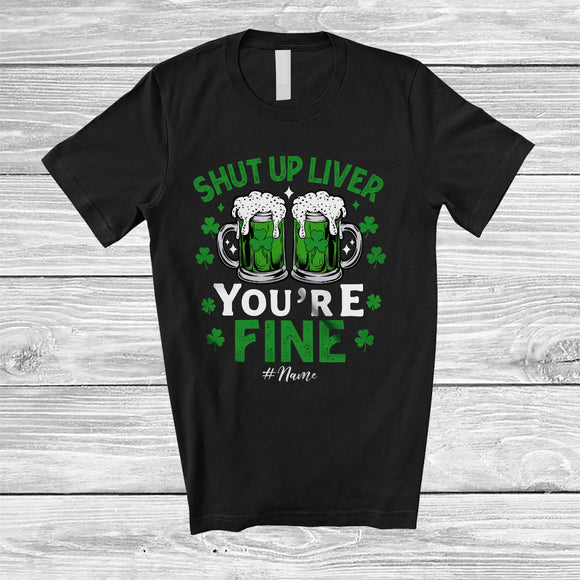 Personalized Shut Up Liver You're Fine; Cheerful St. Patrick's Day Beer Custom Name Drinking T-Shirt