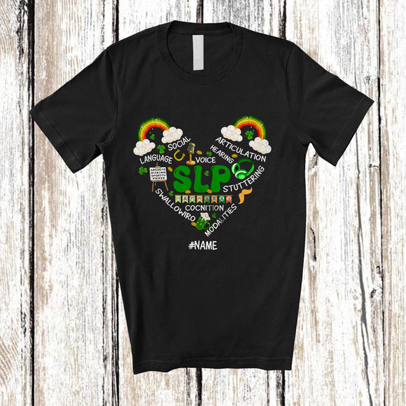 Personalized SLP; Amazing St. Patrick's Day Rainbow Shamrock Heart Shape; Custom Name SLP T-Shirt