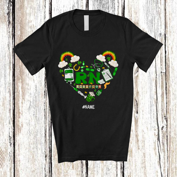 Personalized RN; Amazing St. Patrick's Day Rainbow Shamrock Heart Shape; Custom Name Nurse T-Shirt