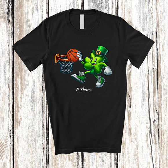 Personalized Shamrock Playing Basketball; Amusing St. Patrick's Day Irish; Custom Name Sport Player T-Shirt