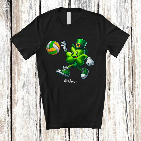 Personalized Shamrock Playing Volleyball; Amusing St. Patrick's Day Irish; Custom Name Sport Player T-Shirt