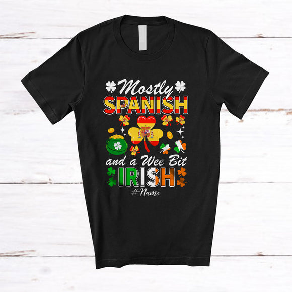 Personalized Custom Name Spanish Wee Bit Irish; Amazing St. Patrick's Day Scotland Shamrocks T-Shirt