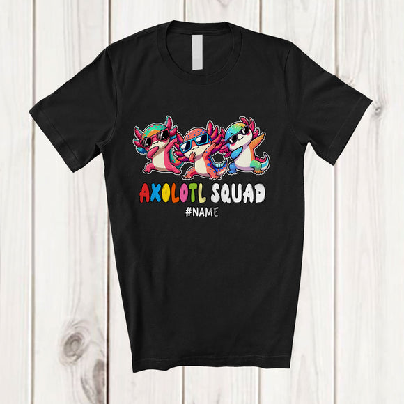 Personalized Axolotl Squad; Joyful Birthday Three Axolotl Dabbing Sunglasses; Custom Name Family T-Shirt