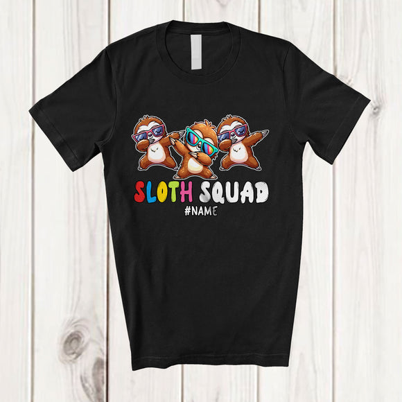 Personalized Sloth Squad; Joyful Birthday Three Sloth Dabbing Sunglasses; Custom Name Family T-Shirt
