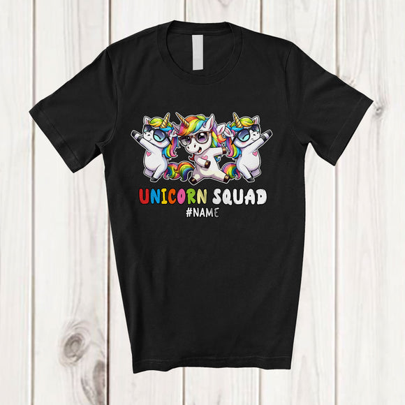 Personalized Unicorn Squad; Joyful Birthday Three Unicorn Dabbing Sunglasses; Custom Name Family T-Shirt