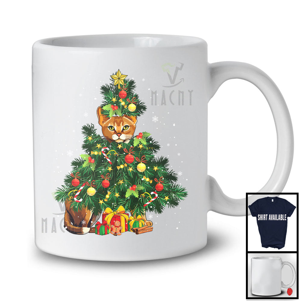 Abyssinian Cat Christmas Tree Cosplay; Merry X-mas Abyssinian Cat Owner; Snowing Family Group T-Shirt