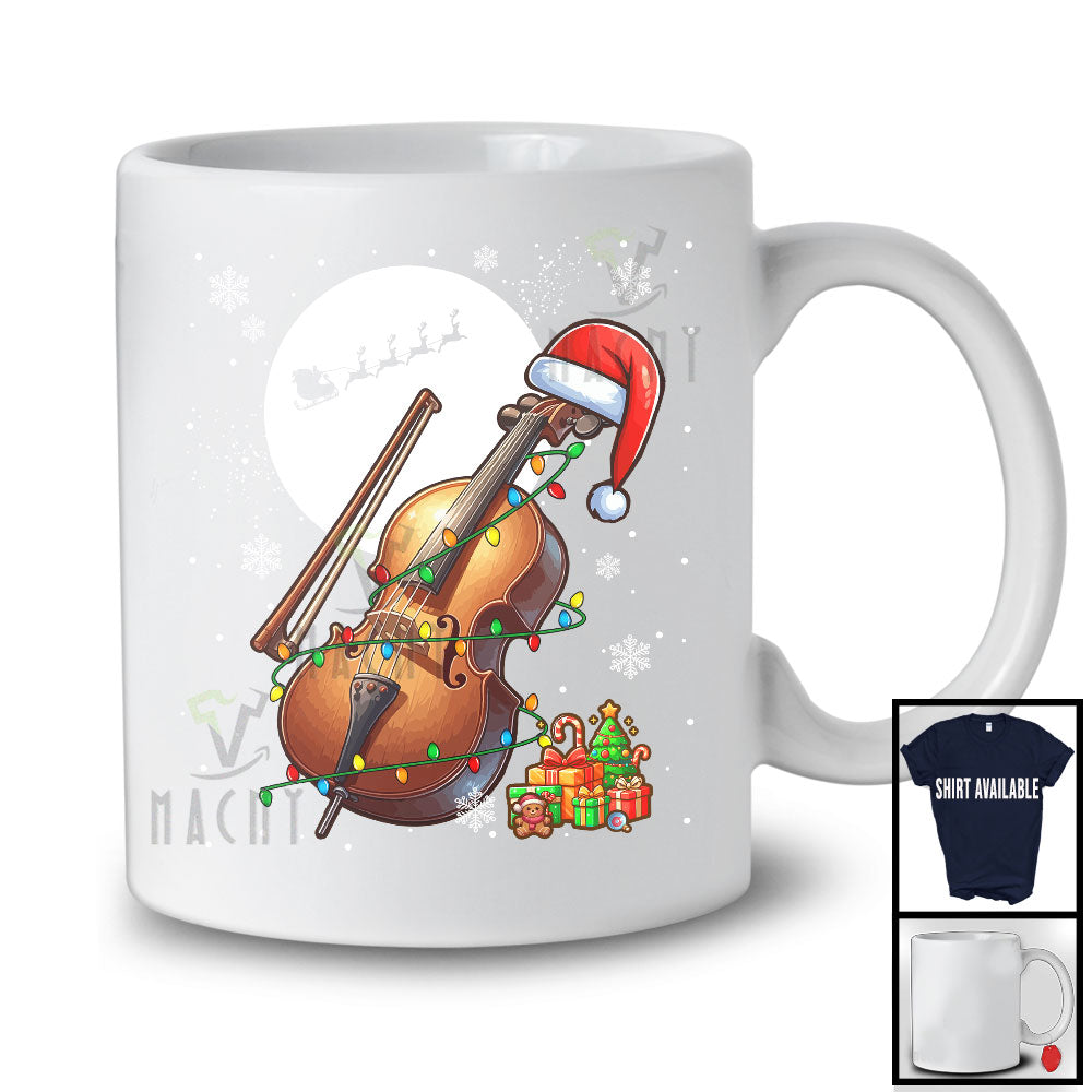 Cello Santa; Amusing Christmas Lights Snowing Santa Cello Player; Musical Instruments T-Shirt