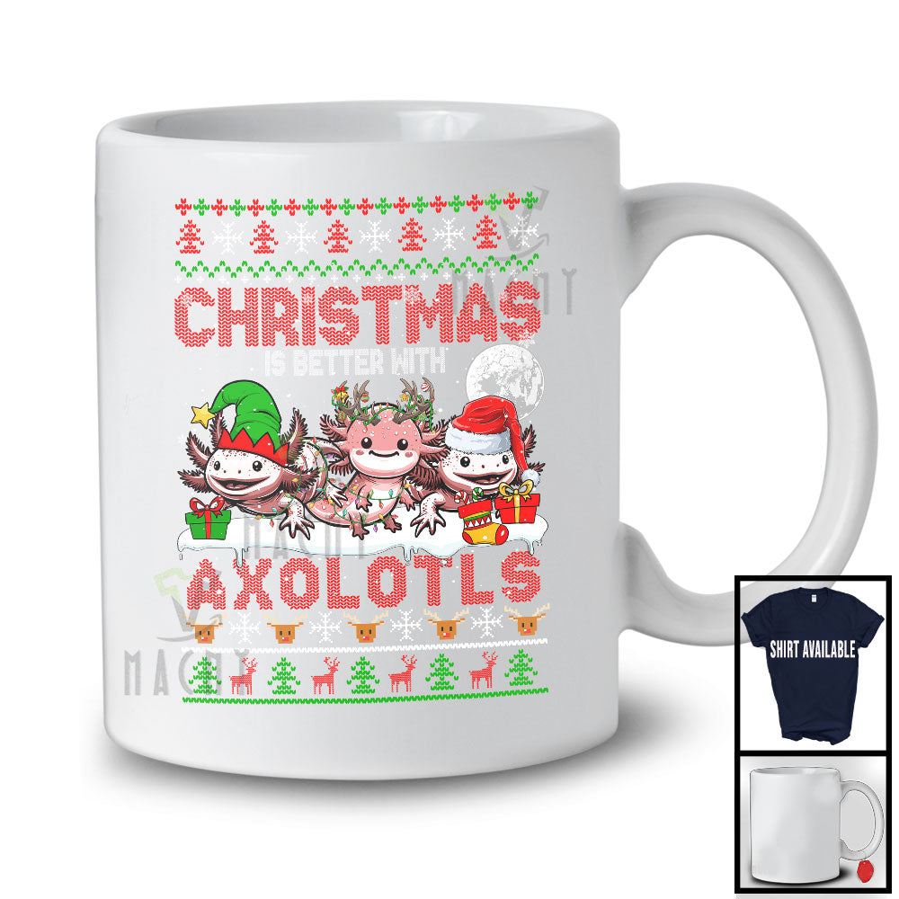 Christmas Is Better With Axolotls; Amusing X-mas Santa Elf Reindeer Animal; Sweater Family T-Shirt