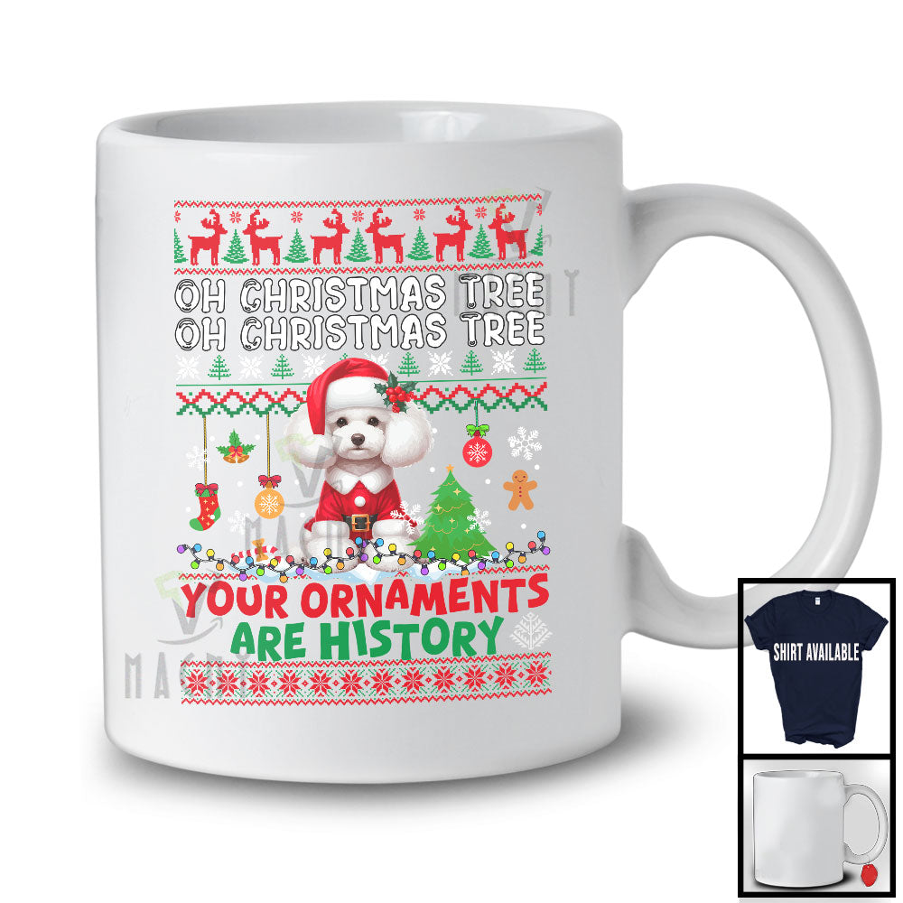 Christmas Tree Your Ornaments Are History; Merry X-mas Lovely Poodle Santa; Family T-Shirt. This cotton t-shirt is a durable staple product with a classic fit. One of the most popular items, it has a relaxed style made for everyday and casual wear.