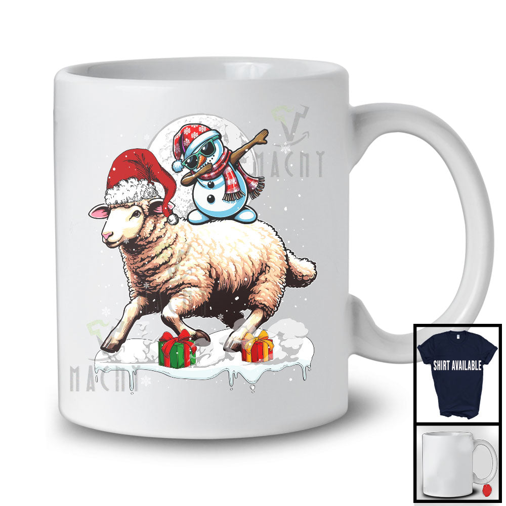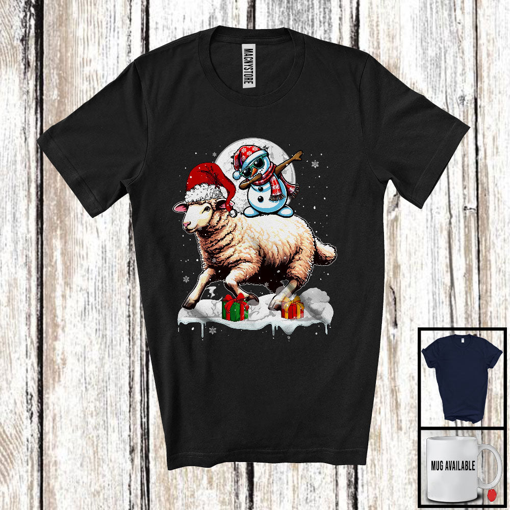 Dabbing Snowman Riding Sheep; Humorous Christmas Snow Around Farm Animal; X-mas Farmer T-Shirt