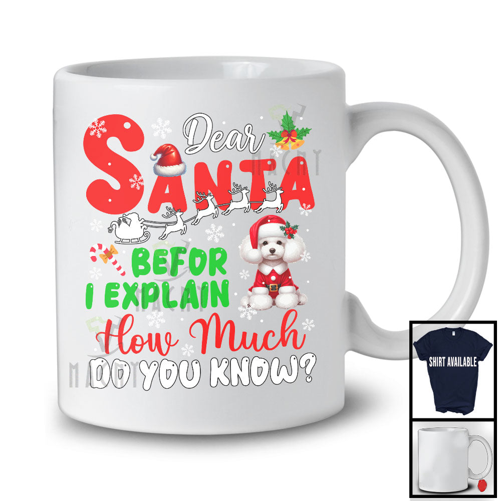 Dear Santa Before I Explain; Wonderful Christmas Poodle Santa Naughty; Snowing Family T-Shirt. This cotton t-shirt is a durable staple product with a classic fit. One of the most popular items, it has a relaxed style made for everyday and casual wear.