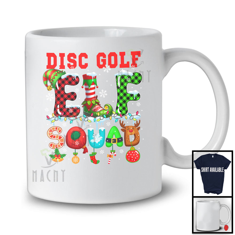 • Disc Golf Elf Squad; Wonderful Christmas Simple Elf Costume; Pajamas Sport Player Team T-Shirt. This cotton t-shirt is a durable staple product with a classic fit. One of the most popular items, it has a relaxed style made for everyday and casual wear.