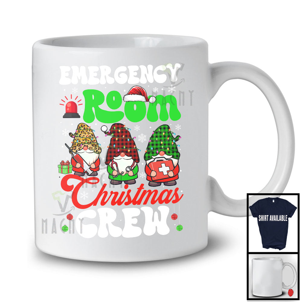 Emergency Room Christmas Crew; Adorable X-mas Three Plaid Gnomes Nursing; Nurse Group T-Shirt. This cotton t-shirt is a durable staple product with a classic fit. One of the most popular items, it has a relaxed style made for everyday and casual wear.