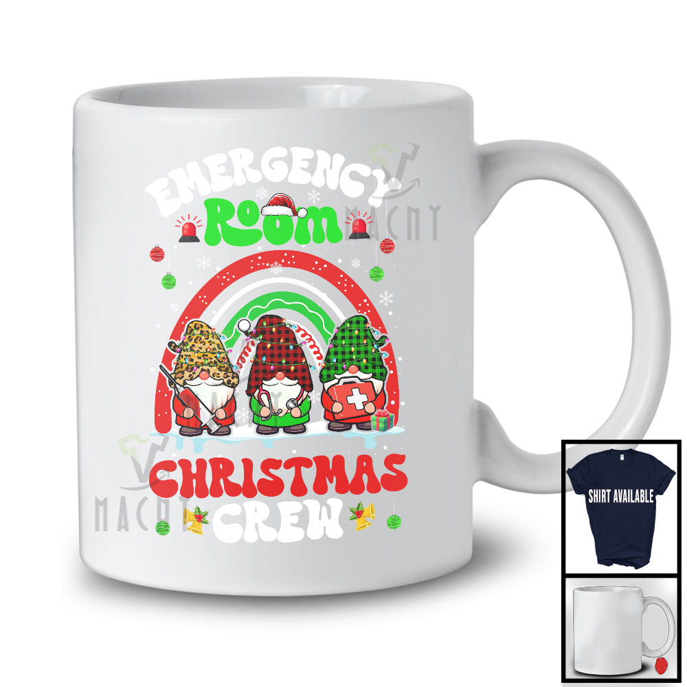 Emergency Room Christmas Crew; Adorable X-mas Three Plaid Gnomes Rainbow; Nurse Group T-Shirt. This cotton t-shirt is a durable staple product with a classic fit. One of the most popular items, it has a relaxed style made for everyday and casual wear.