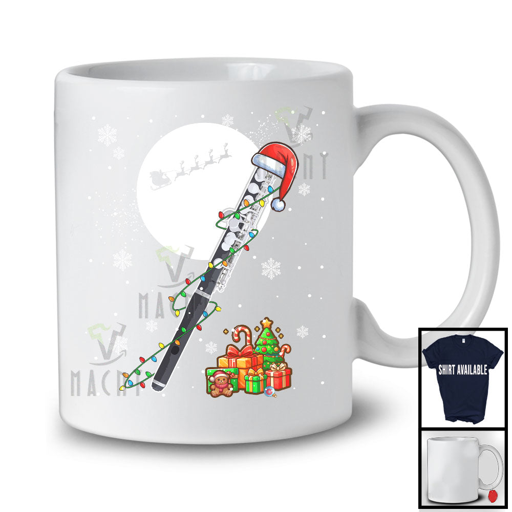 Flute Santa; Amusing Christmas Lights Snowing Santa Flute Player; Musical Instruments T-Shirt