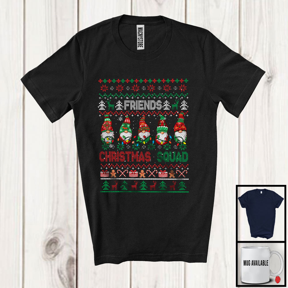 Friends Christmas Squad; Awesome X-mas Lights Gnomes Gnomies Sweater; Family Group T-Shirt. This cotton t-shirt is a durable staple product with a classic fit. One of the most popular items, it has a relaxed style made for everyday and casual wear.