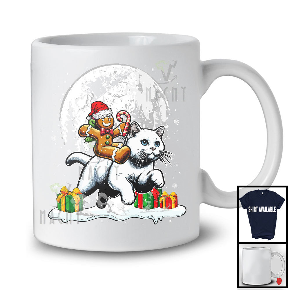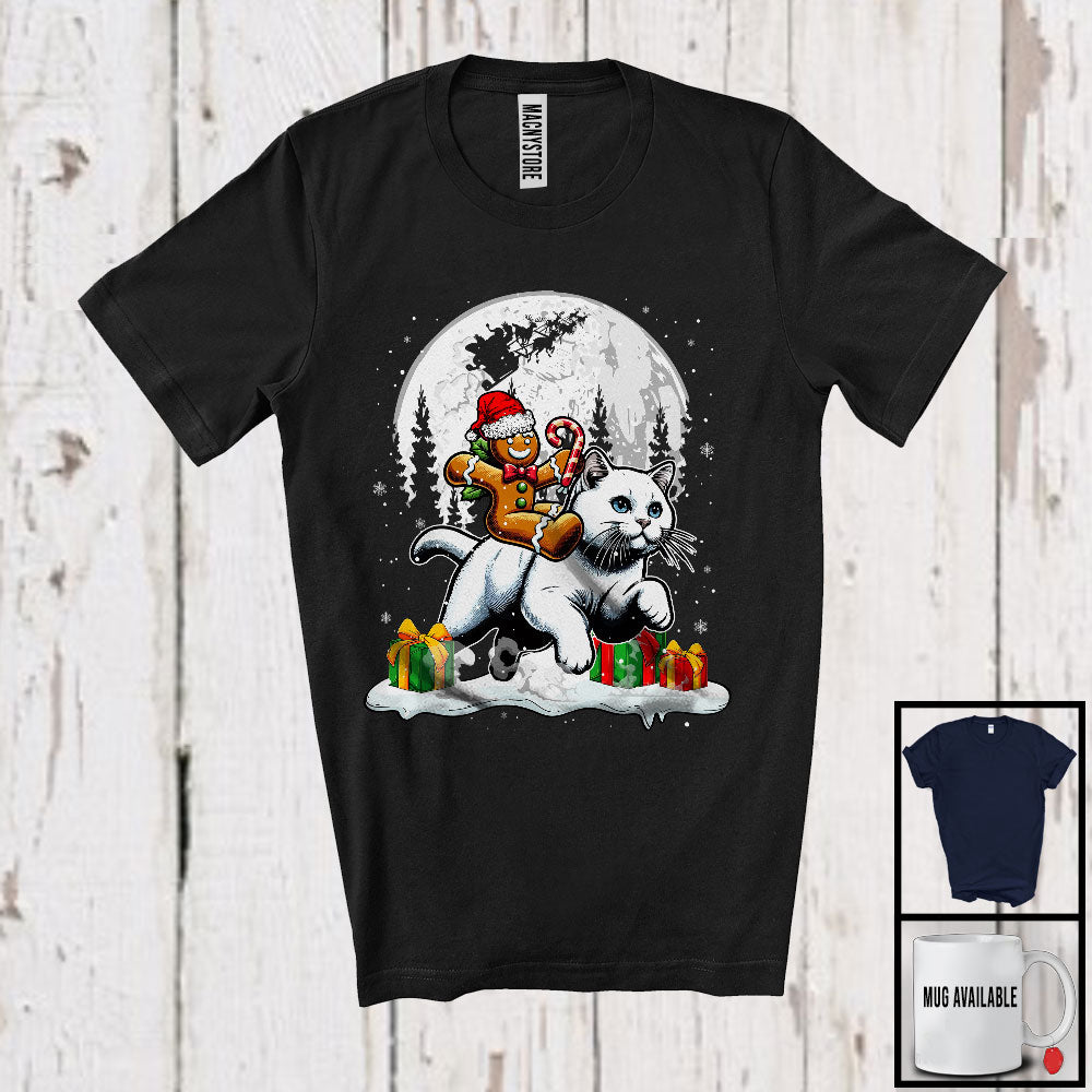 new MacnyStore - Gingerbread Man Riding Cat; Joyful Christmas Moon Animal Lover; Snowing Around T-Shirt – Macnystore