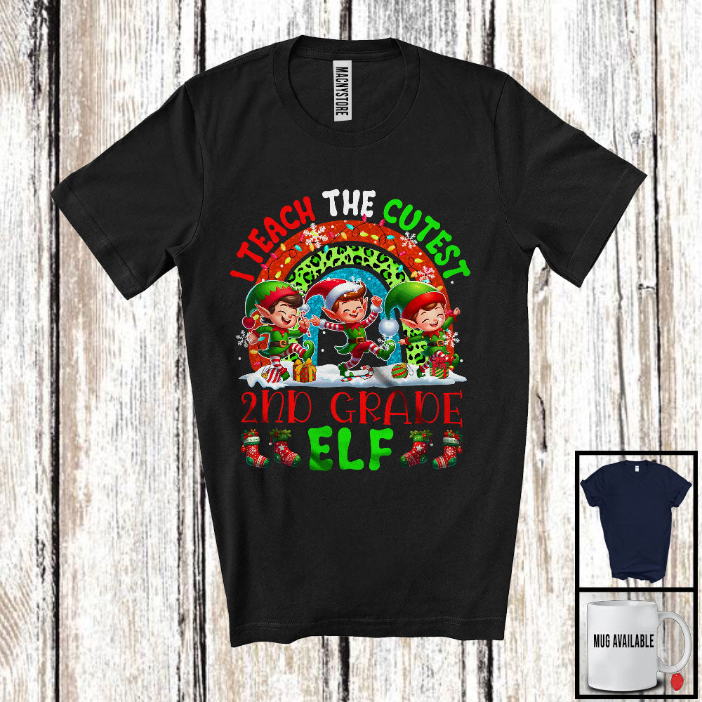 I Teach The Cutest 2nd Grade Elf; Amazing Christmas Leopard Rainbow; Assistant Teacher T-Shirt