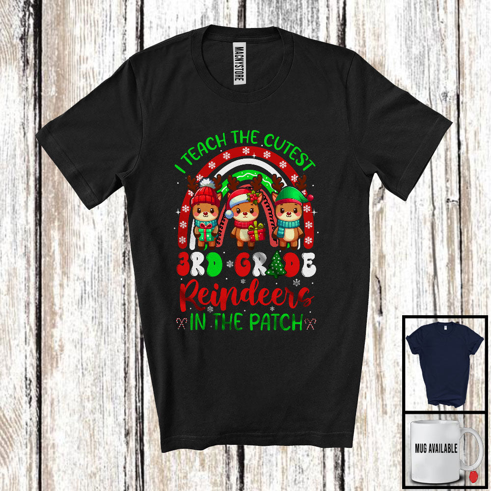 I Teach The Cutest 3rd Grade Pumpkins; Lovely Christmas Rainbow Three Reindeers; X-mas Teacher T-Shirt