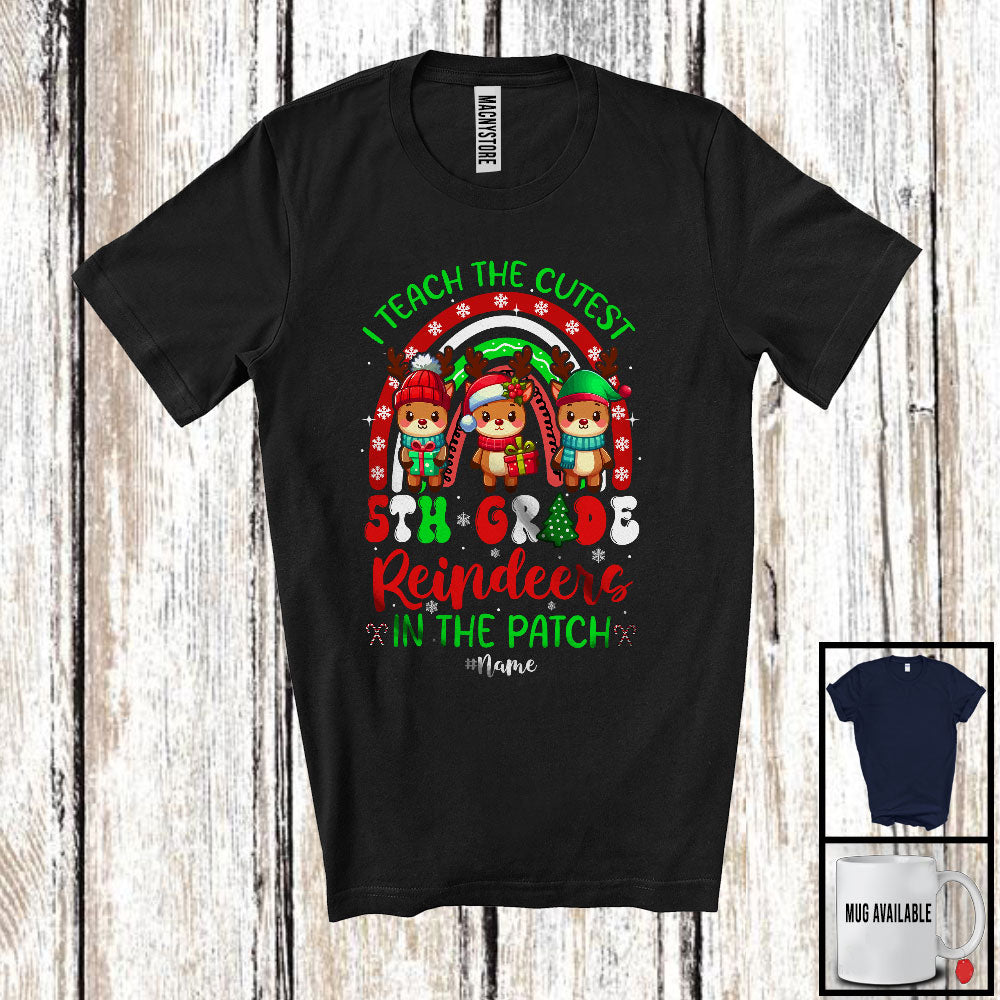 I Teach The Cutest 5th Grade Reindeers; Lovely Christmas Rainbow Three Reindeers; X-mas Teacher T-Shirt