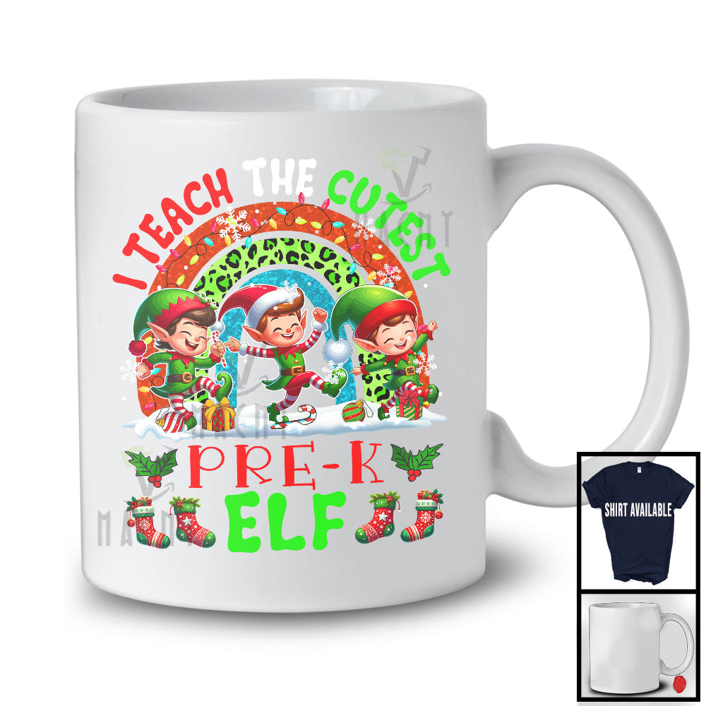 I Teach The Cutest Pre-K Elf; Amazing Christmas Leopard Rainbow; Assistant Teacher T-Shirt