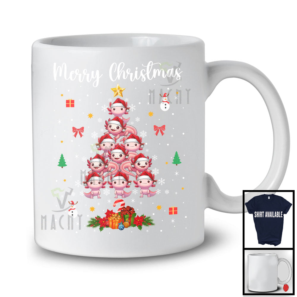 Merry Christmas; Adorable Santa Axolotl Christmas Tree Lights; Animal Lover X-mas Group T-Shirt