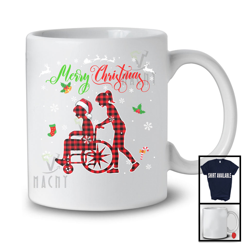 new MacnyStore - Merry Christmas; Awesome X-mas Plaid Snowing Caregiver Icon; Caregiver Proud Jobs Group T-Shirt – Macnystore