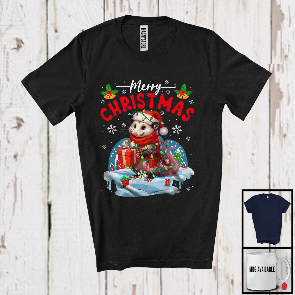 Merry Christmas; Fantastic X-mas Lights Santa Opossum Snowing Around; Wild Animal Lover T-Shirt