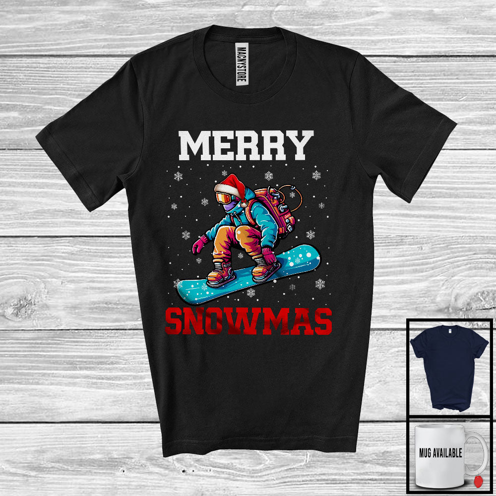 Merry Snowmas; Awesome Christmas Santa Snowboarding Player Lover; X-mas Lights Snowing T-Shirt
