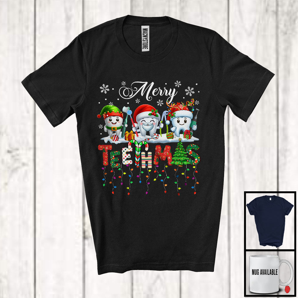 new MacnyStore - Merry Teethmas; Lovely Christmas Reindeer ELF Santa Teeth; Dental Dentist X-mas Group T-Shirt – Macnystore