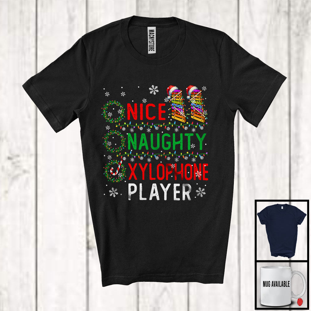 Nice Naughty Xylophone Player; Amazing Christmas Santa List; X-mas Musical Instruments T-Shirt