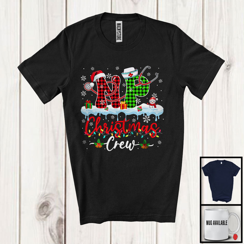 NP Christmas Crew; Wonderful X-mas Lights Santa Red Green Plaid; Nursing Nurse Group T-Shirt