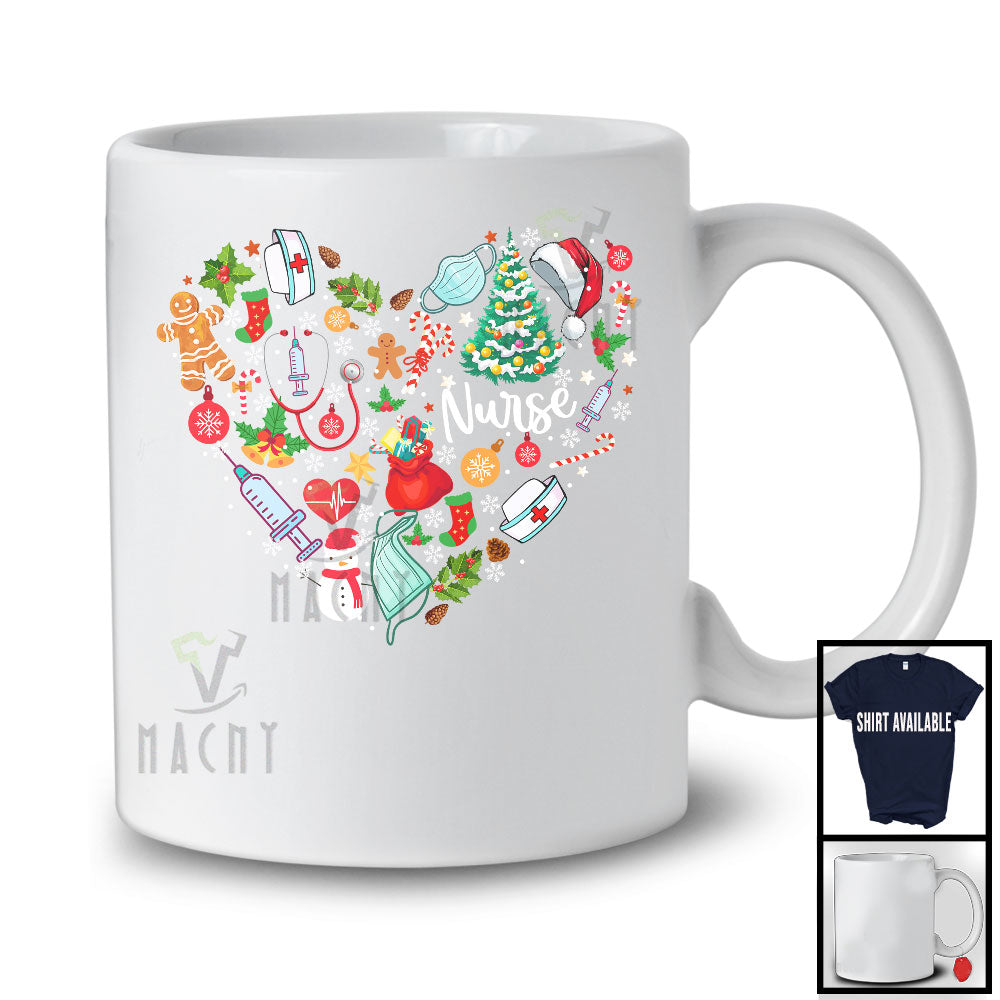 Nurse Tools Christmas Heart Shape; Humorous X-mas Santa Nurse Lover; Jobs Proud T-Shirt