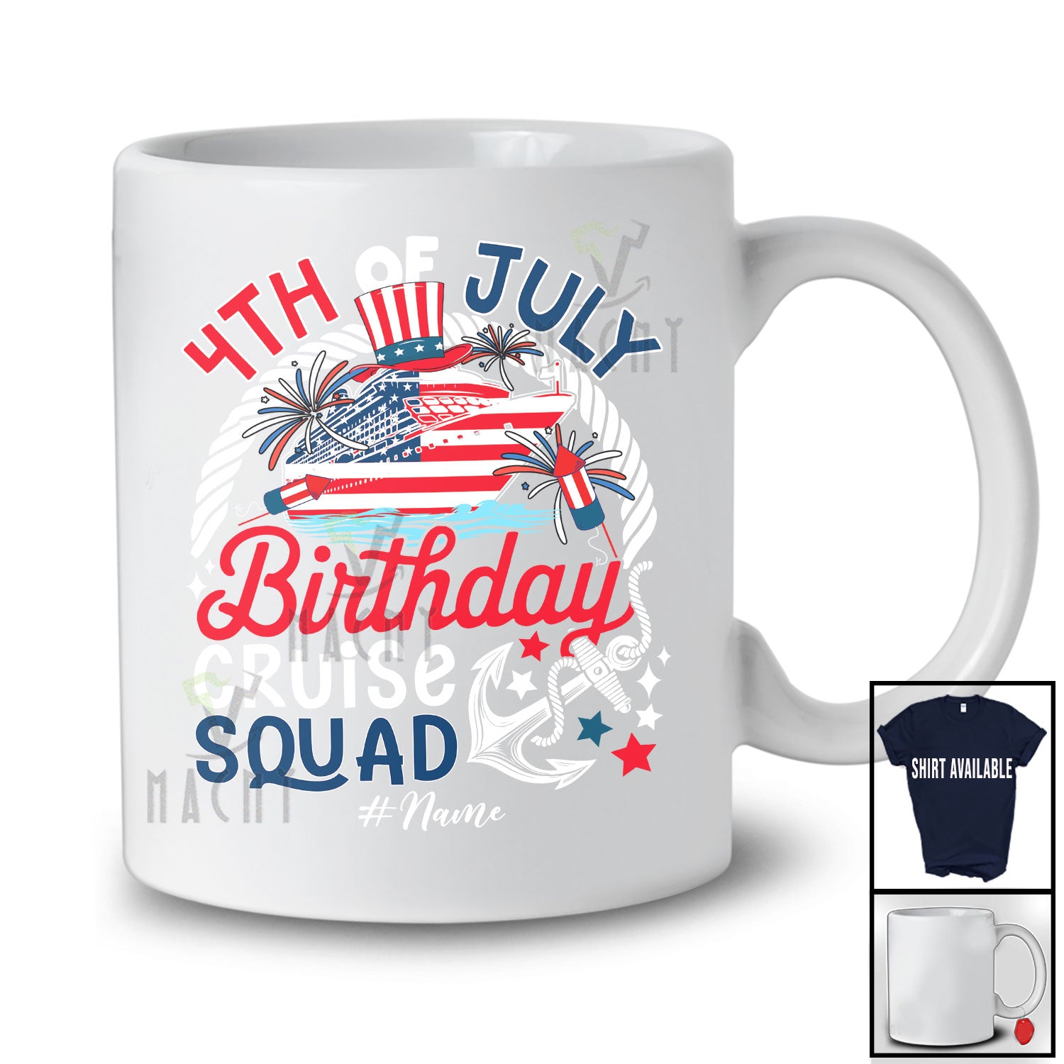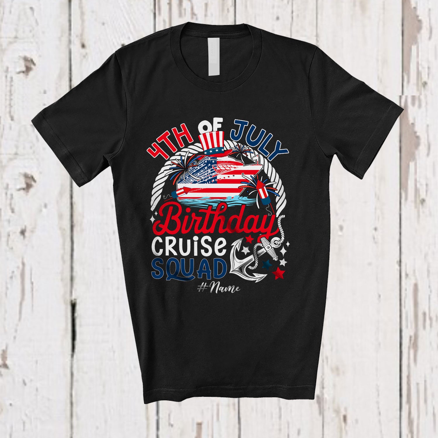 • Personalized 4th Of July Birthday Cruise Squad; Amazing Custom Name Family; US Flag Patriotic T-Shirt. This cotton t-shirt is a durable staple product with a classic fit. One of the most popular items, it has a relaxed style made for everyday and casual wear.
