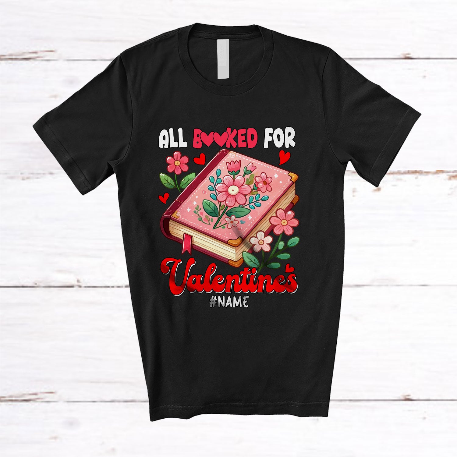 Personalized All Booked For Valentines; Joyful Book Flowers; Custom Name Teacher Librarian T-Shirt