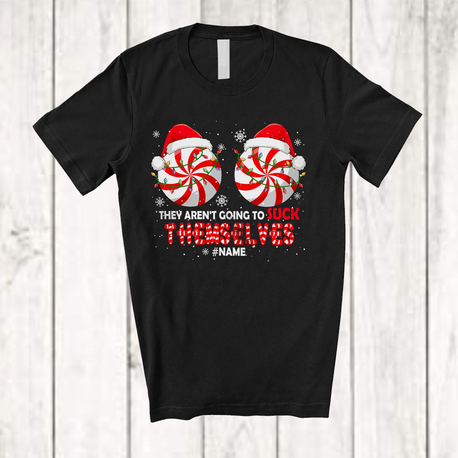 This Personalized Aren't Going To Suck Themselves; Joyful Christmas Custom Name Two Candy Canes Round T-Shirt is great idea gift for your family, friends in this birthday, christmas, mother's day, father's day, patrick's day or any holiday.