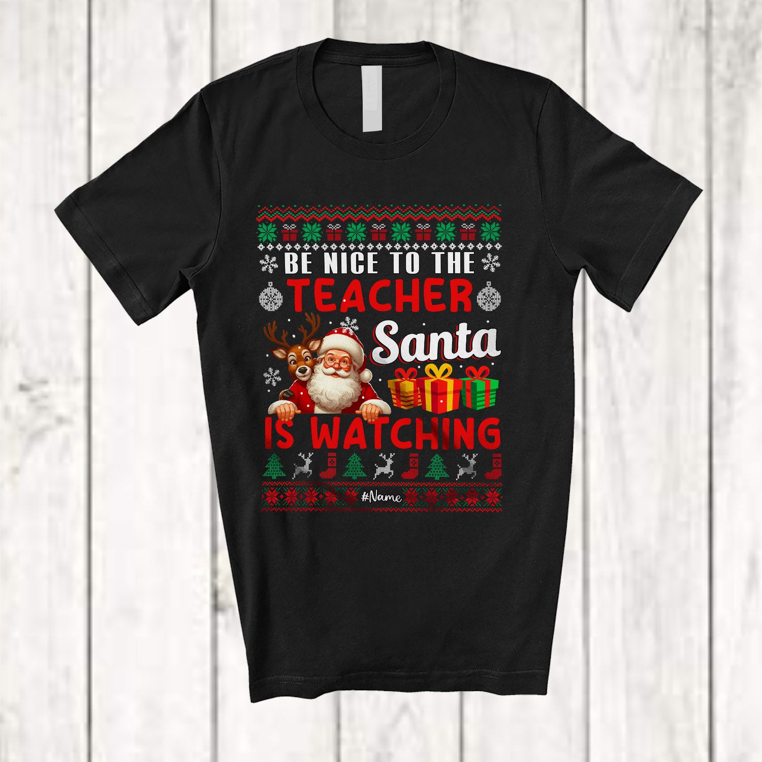 new MacnyStore - Personalized Be Nice To The Teacher; Amusing Christmas Sweater Santa; Custom Name Jobs T-Shirt – Macnystore