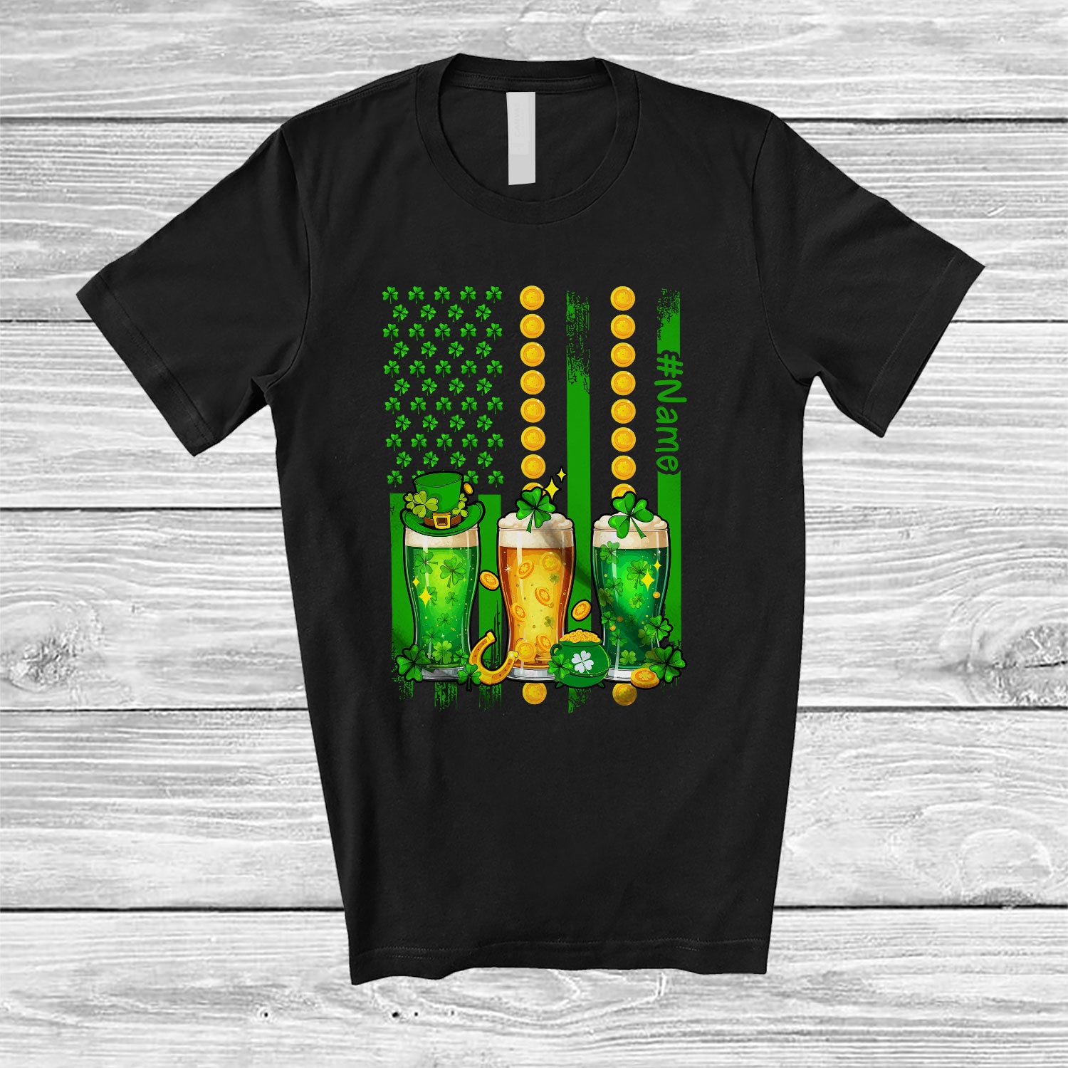 Personalized Beer American Flag; Awesome St. Patrick's Day Shamrocks; Custom Name Drinking T-Shirt
